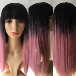Elegant Black Pink Ombre Long Straight Costume Wig 1b Pink Ombre
