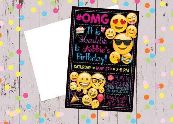Birthday Invitation 5x7 Emoji Theme Black Pink Purple Etsy