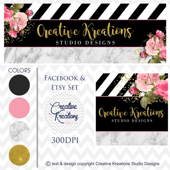 Timeline Banner Watercolor Floral Chic Black White Pink Gold Etsy