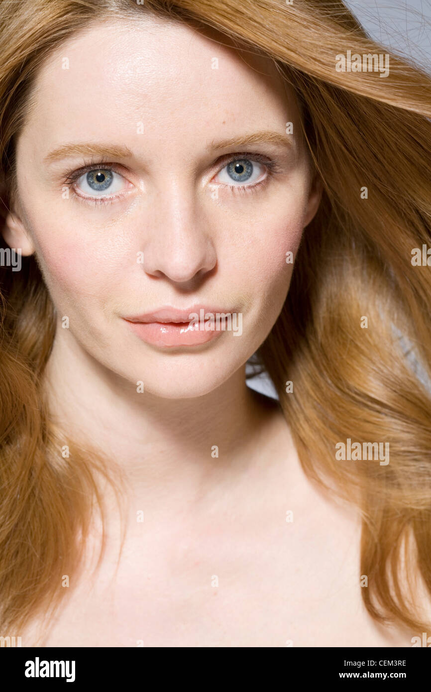 Female Long Wavy Fair Hair Wearing Pale Pink Eyeshadow Black Stock