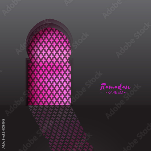 Pink Origami Mosque Window Ramadan Kareem Greeting Card With Arabic