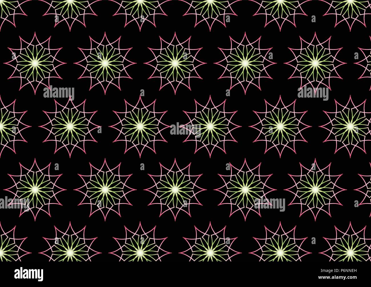 Pink And Light Green Neon Flower Pattern Style On Black Color